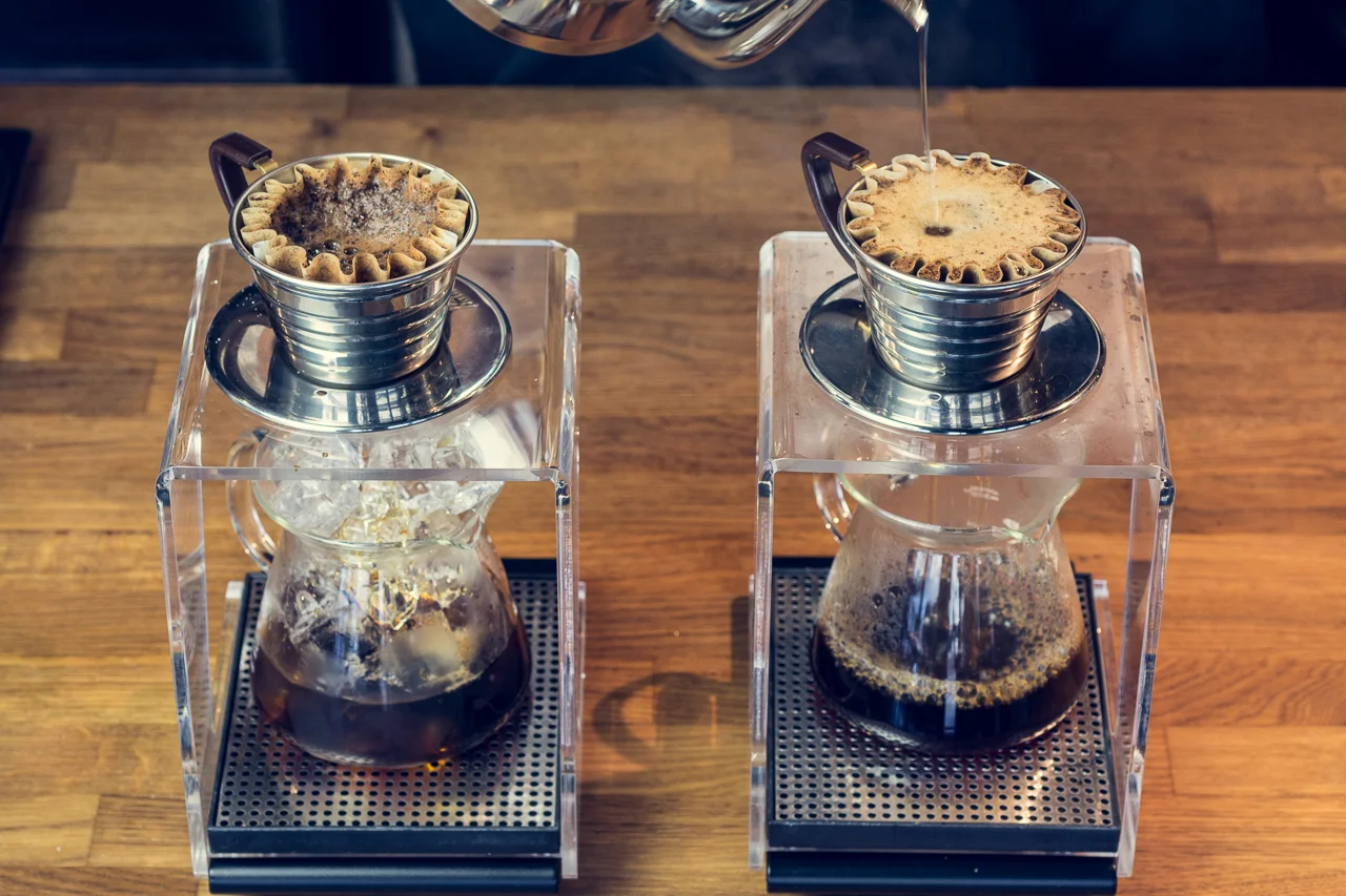 Her brygger vi iskaffe (til venstre) og varm kaffe (til høyre). Foto: Bjørn Joachimsen/Lundblad.
